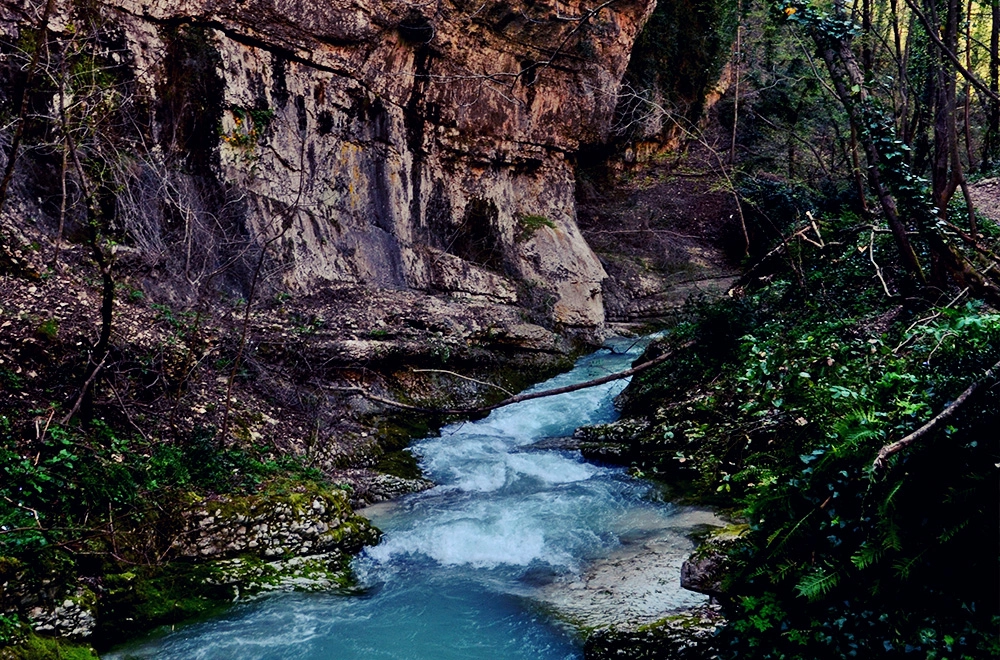 Caratteristiche del sentiero: l'itinerario si svolge, nella prima parte, su dei gradoni di roccia naturali leggermente esposti dopodiché esso si snoda lungo il corso del fiume, attraversando dei piccoli tratti rocciosi in prossimità dell'acqua che potrebbero pertanto risultate umidi.