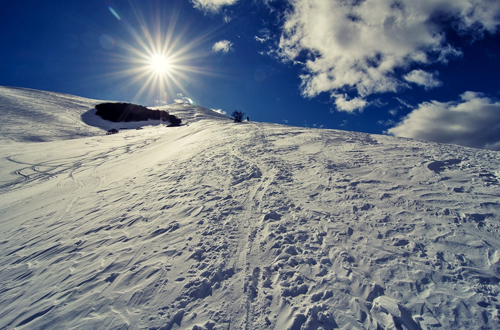 La Majella d'inverno assume un fascino incredibile. Le vette che coronano la Valle dell'Orfento si coprono di bianco, la natura rallenta e si fa tutto più silenzioso e ovattato, il tempo è scandito dal vento e dal suono delle ciaspole che affondano nella neve.