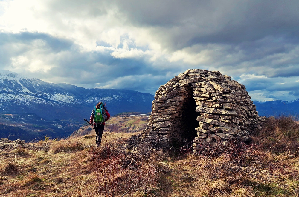 Da Decontra, piccolo e grazioso borgo in pietra a ridosso della Valle dell'Orfento, ci dirigeremo verso Pianagrande, a oltre 1500 metri di quota, attraversando antichi terrazzamenti e capanne in pietra a secco, un luogo che fino a mezzo secolo fa era di fondamentale importanza per la sopravvivenza delle popolazioni locali. Una volta giunti a destinazione, il panorama sulla Valle dell'Orfento e sulle vette più alte della Majella ci lascerà senza fiato.
