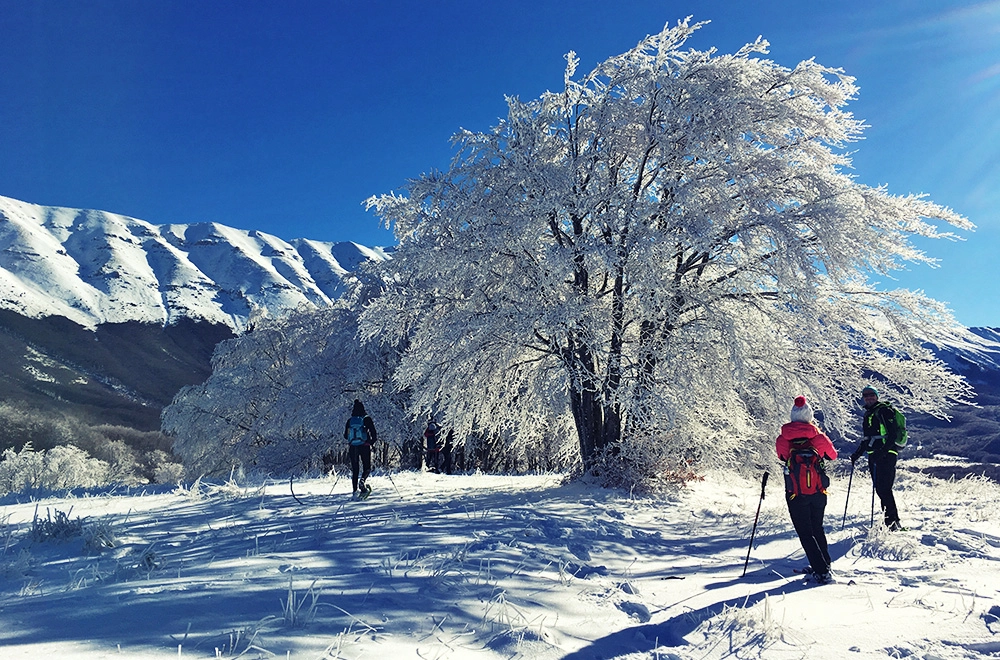 Circondati da panorami mozzafiato e dai fitti boschi cammineremo alle pendici della Majella per assaporare tutto il fascino della natura in inverno. Le vallate ricoperte di neve, le tracce del lupo e delle sue prede sulla neve, il cielo terso renderanno la giornata indimenticabile.