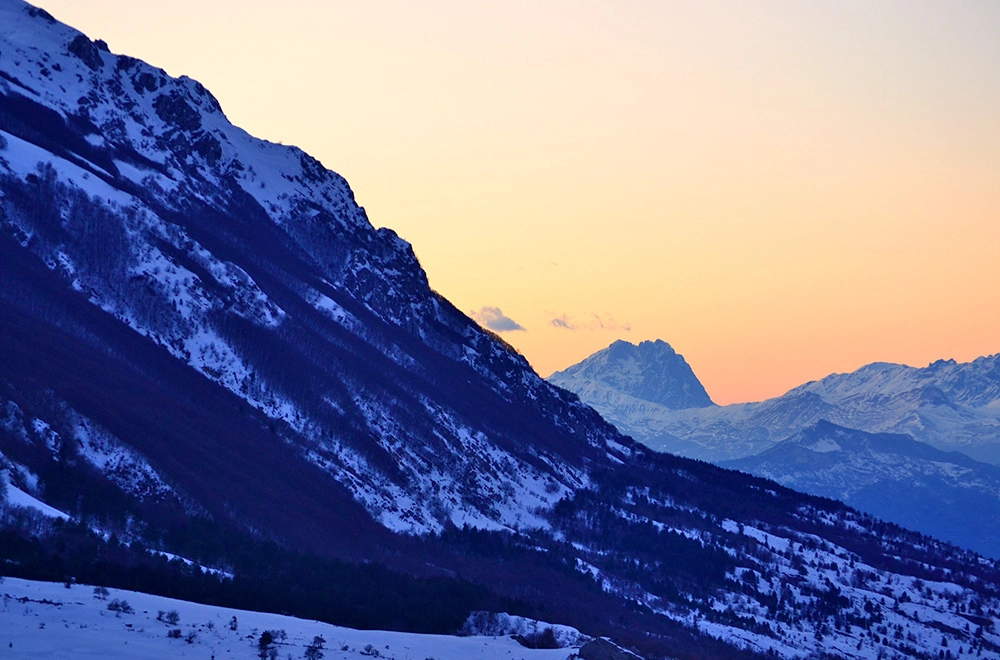 Escursione al tramonto con le ciaspole tra majella e Morrone