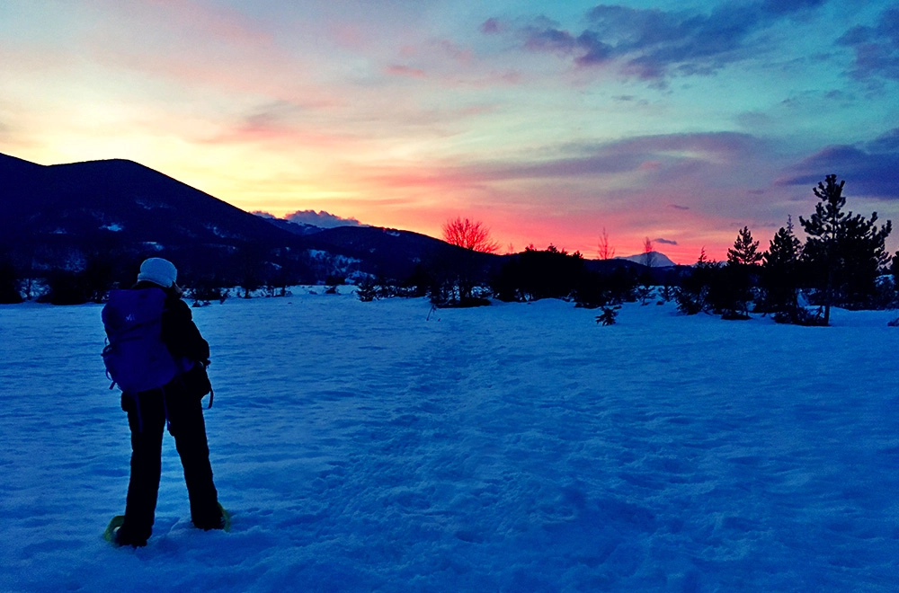 Escursione al tramonto con le ciaspole tra majella e Morrone